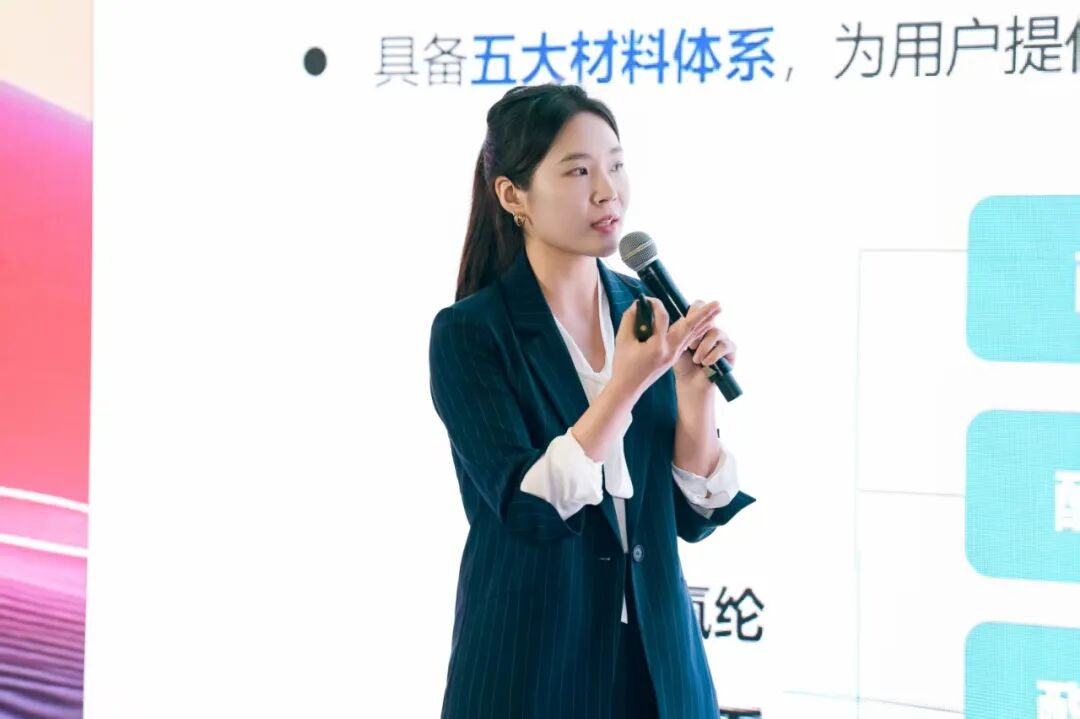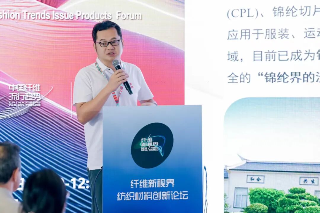 黑龙江伊品新材料有限公司新材料事业部总经理郑文昌介绍了该公司利用生物基戊二胺替代石油基己二胺,生产出全新一代功能型生物基锦纶品牌——EYLON伊纶?。该产品具有亲肤柔软、舒适干爽、持续凉感、色彩鲜艳等优异服用性能,配合吊牌追溯系统,可为终端品牌客户提供更全面的可持续商业解决方案。
