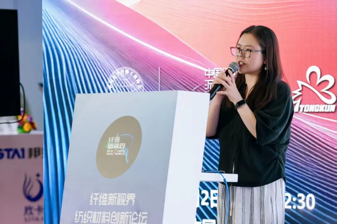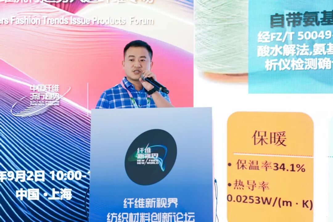 9月2日上午,纤维新视界——纺织材料创新论坛之桐昆·中国纤维流行趋势入选纤维专场在2025yarnexpo秋冬纱线展上如期举行。自 2012 年发布以来,中国纤维流行趋势始终致力于挖掘国内高技术纤维产品。通过对原料端趋势的专业分析与解读,其持续向下游客户传递纤维领域的最新技术、多元应用及前沿方向,为推动产业链协同发展提供切实可行的中国纤维方案?;疃殖?,东华大学环境科学与工程学院高级工程师陈向玲与11位桐昆·中国纤维流行趋势2025/2026入选企业代表作了专题分享?;疃芍泄宋ひ敌崾谐⊥乒悴?span textstyle="" style="font-weight: bold;">王璋和主持。