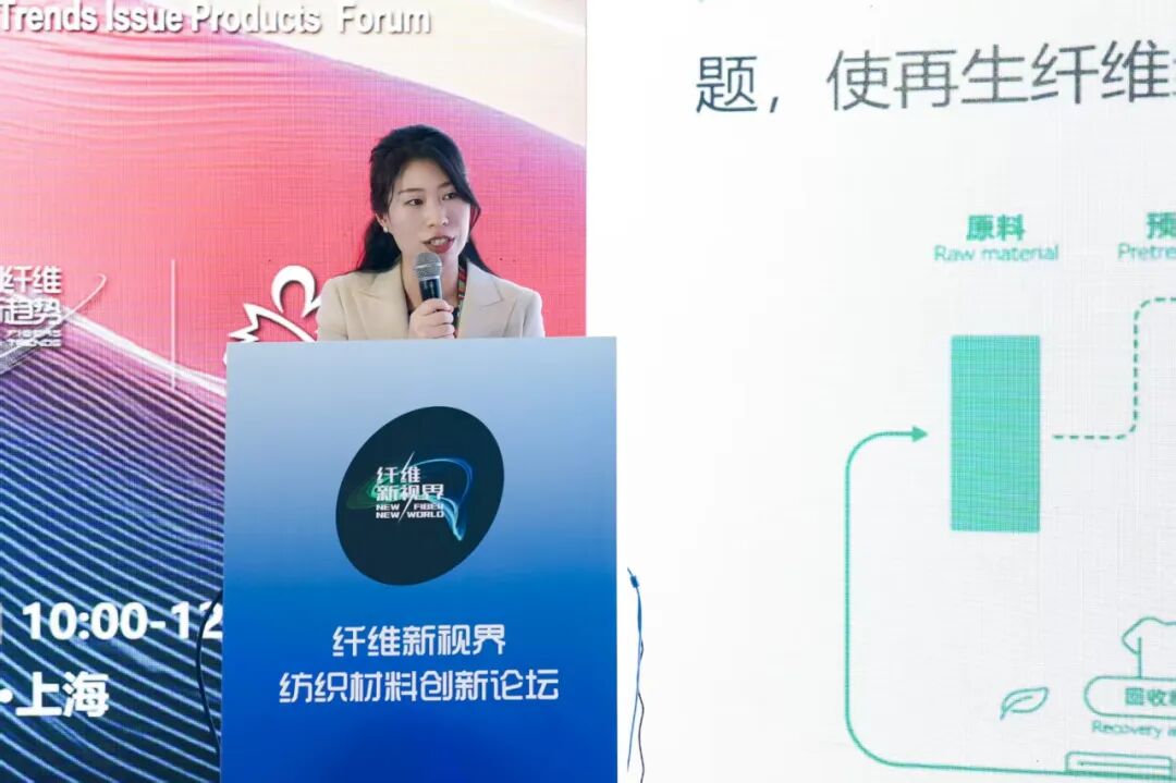来自浙江佳人新材料有限公司品牌市场部的张海萍介绍,作为国内化学法再生聚酯的领军者,佳人构建了从再生 DMT、切片到纤维的全链条高值化布局,并与众多国际品牌建立深度合作,形成 “回收 - 再生 - 再应用” 的可持续供应链。通过技术创新不仅解决了混纺材料分离、脱色等行业难题,同时也有助于提高回收原料的适用范围,为全球废旧纺织品循环利用提供中国方案。