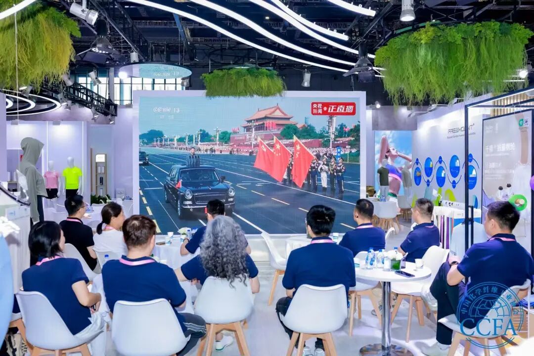 9月3日上午,纪念中国人民抗日战争暨世界反法西斯战争胜利80周年大会在北京天安门广场隆重举行。彼时,2025Yarn Expo秋冬纱线展的展厅内,不同展位的LED屏上同步直播着阅兵盛况,原本穿梭于展位间的人流仿佛被按下了“暂停键”,参展商与观众纷纷驻足,目光聚焦于那一幕幕庄严而震撼的画面。这短暂的驻足,是对历史的共同铭记,对先烈的深切缅怀,更是对国家强盛的由衷自豪。