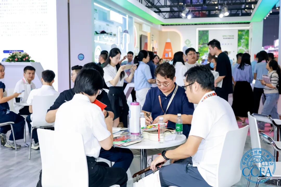 作为产业链整合与资源优化的创新范式,组团式参展正成为链主企业撬动产业生态、产业集群提升区域品牌势能的核心抓手。展会现场,江苏洪泽展团、赛得利展团、华峰氨纶展团、通用技术新材展团,以及首次设立的生物基纤维专区,洽谈交流的身影络绎不绝,气氛热烈。