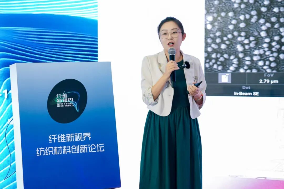 上?;饭刃虏牧峡萍挤⒄褂邢薰靖弊芫?span textstyle="" style="font-weight: bold;">田甜作“来自棕榈的生物基耐久无氟防水技术”报告。该技术的核心优势在于其原料安全环保,防?性好,性能耐久,对织物影响小,具有低碳循环、绿色可降解属性。其在婴童服装、医疗纺织品、快时尚单品、产业用纺织品等多个领域得到了广泛应用,积极助力纺织服装产业迈向环保与高性能兼顾的新阶段。
