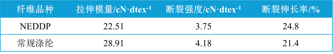 表1 NEDDP纤维与常规涤纶力学性能比较