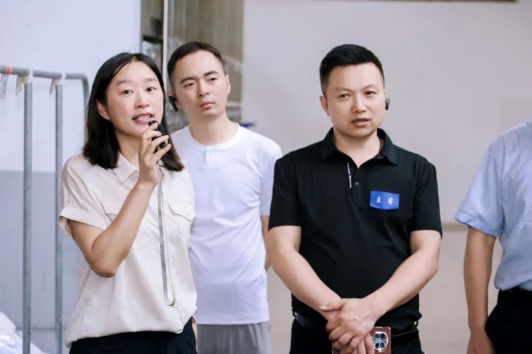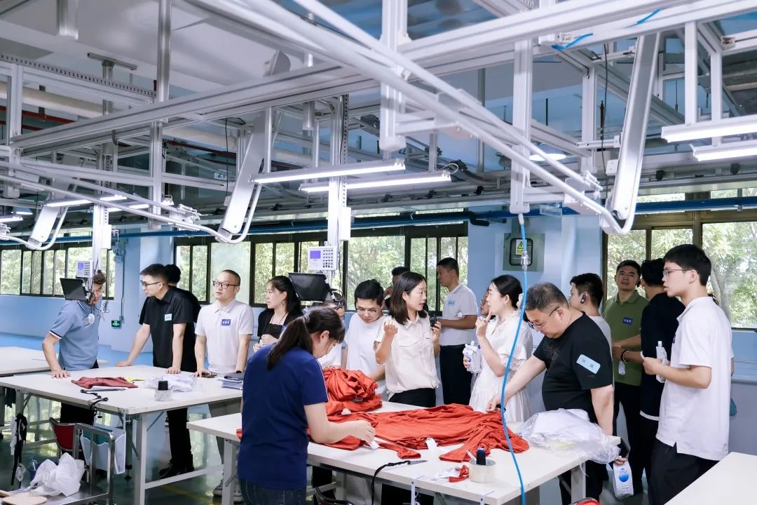 上海嘉麟杰纺织品有限公司专注于中高端运动休闲面料及服装的研发设计、生产制造、营销服务于一体的产业链集成,主营产品包括起绒类面料、纬编羊毛面料和运动功能性面料等。在嘉麟杰副总工程师王俊丽的带领下,学员们参观了智能制造一体化生产车间,包括数智化协同平台、智能吊挂系统、自动仓储分拣等。