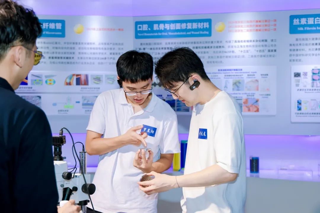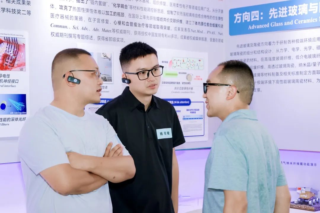 先进纤维材料全国重点实验室是我国纤维和纺织材料领域第一个国家重点实验室,聚焦高性能纤维与复合材料、功能纤维与绿色制造、智能纤维与先端应用三个研究方向。在东华大学材料科学与工程学院罗小娜老师的带领下,学员们参观了东华大学材料科学与工程学院成果展示室,了解了学院在高性能纤维与复合材料、功能纤维与智能材料、生物纤维与健康材料、先进玻璃与陶瓷材料、低碳技术与能源材料等方向的创新成果,以及纤维材料在高端制造、国民经济、生命健康等领域的重要应用及未来潜力。例如,研究团队提出一种“人体耦合”机制,即以人体作为能量交互的载体,利用纤维、人体和大地构成的回路收集环境中的电磁能量,并直接将其转换为射频信号和可见光,实现了将能量采集、信息感知、信号传输等功能集成于单根纤维中,并通过编织制成不依赖芯片和电池的智能纺织品,有望拓展电子产品的应用场景,甚至改变人们智慧生活的方式。