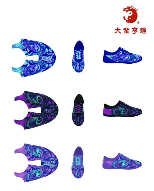 配套鞋品设计灵感源自“传统水墨脸谱”,由北京大业亨通体育有限公司赞助支持。京剧脸谱图案加以刺绣、闪粉工艺点缀,造型流畅,极富东方韵味。色彩搭配与衣身一致,展现中国传统文化雅致与赛博朋克未来感相融合的魅力。